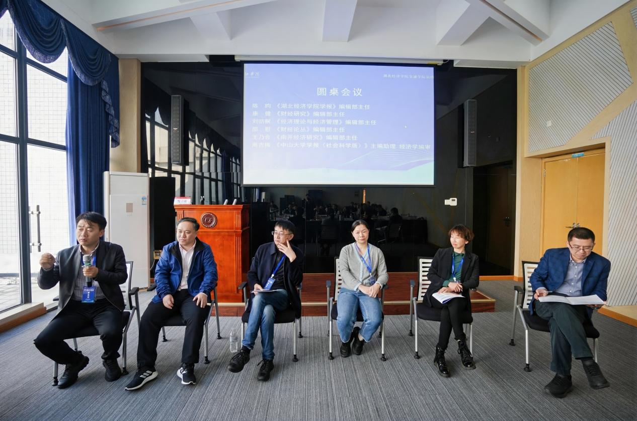 圆桌会议环节,《南开经济研究》编辑部主任王乃合、《经济理论与经济管理》编辑部主任刘昉舸、《财经研究》编辑部主任康健、《财经论丛》编辑部主任邵慰、《中山大学学报(社会科学版)》主编助理周吉梅以及《湖北经济学院学报》编辑部主任陈昀等6位专家围绕“金融强国建设与学术论文选题”展开深入探讨。专家们从如何选题、破题等方面给予指导,强调科研要立足国家战略和现实问题,避免同质化研究,注重理论深度和创新性。同时鼓励青年学者通过广泛阅读、反复打磨、积极参会交流提升研究能力,结合不同期刊栏目设置与审稿偏好精准地把握投稿方向。