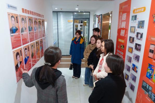 在梧桐树保险经纪党支部书记、梧桐树保险研究院执行院长王春梅的全程陪同下,师生一行深入公司办公区域,开启了一场全方位的职场体验。从个人险、团体险的业务经办到客户服务中心的协赔流程,从AI智能客服的科技应用到律所支撑的理赔保障体系,同学们近距离观察了保险服务从需求对接、方案定制到售后理赔的全链条运作。与核保、合规、销售等不同岗位员工的即时交流,让课堂上抽象的"保险中介""风险管理"等概念变得具体可感。"原来保险经纪不仅是产品推介,更要基于客户需求横向对比百余家保险公司的产品,提供中立专业的定制化方案",研究生郭思伟在参观后分享了自己的新认知。