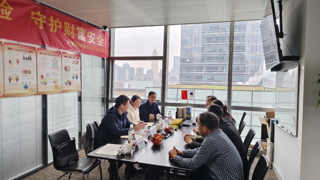 12月15日上午,金融学院副院长马永健、金融科技现代产业学院副院长万鹏博、应用金融系主任张攀红、应用金融系教授张立勇一行赴中国国际期货股份有限公司武汉分公司开展走访交流,双方围绕校企合作、实习实训基地共建、课程共建及培训合作等事宜展开深度洽谈。